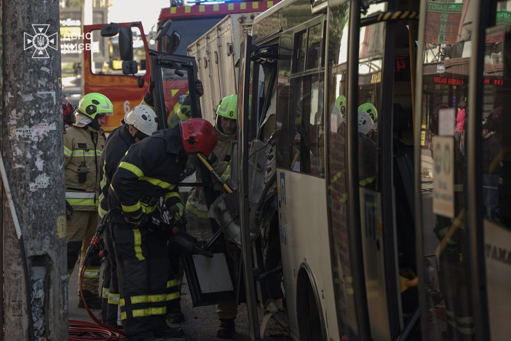 У Києві вантажівка на повній швидкості вʼїхала в маршрутку з пасажирами. Постраждали 9 людей, водія та пасажирку витягали рятувальники.