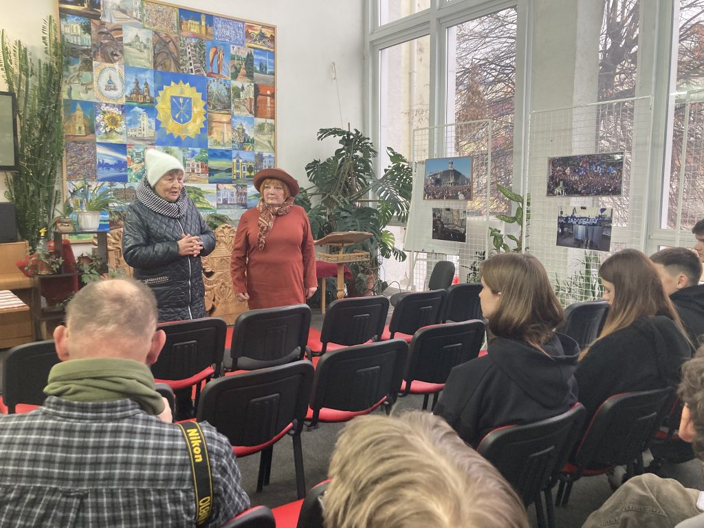 У зустрічі також взяли участь учні 10-Б класу історичного профілю комунального закладу Хмельницької міської ради ліцею № 15 імені Олександра Співачука під керівництвом заступниці директора з виховної роботи Валентини Боричко.