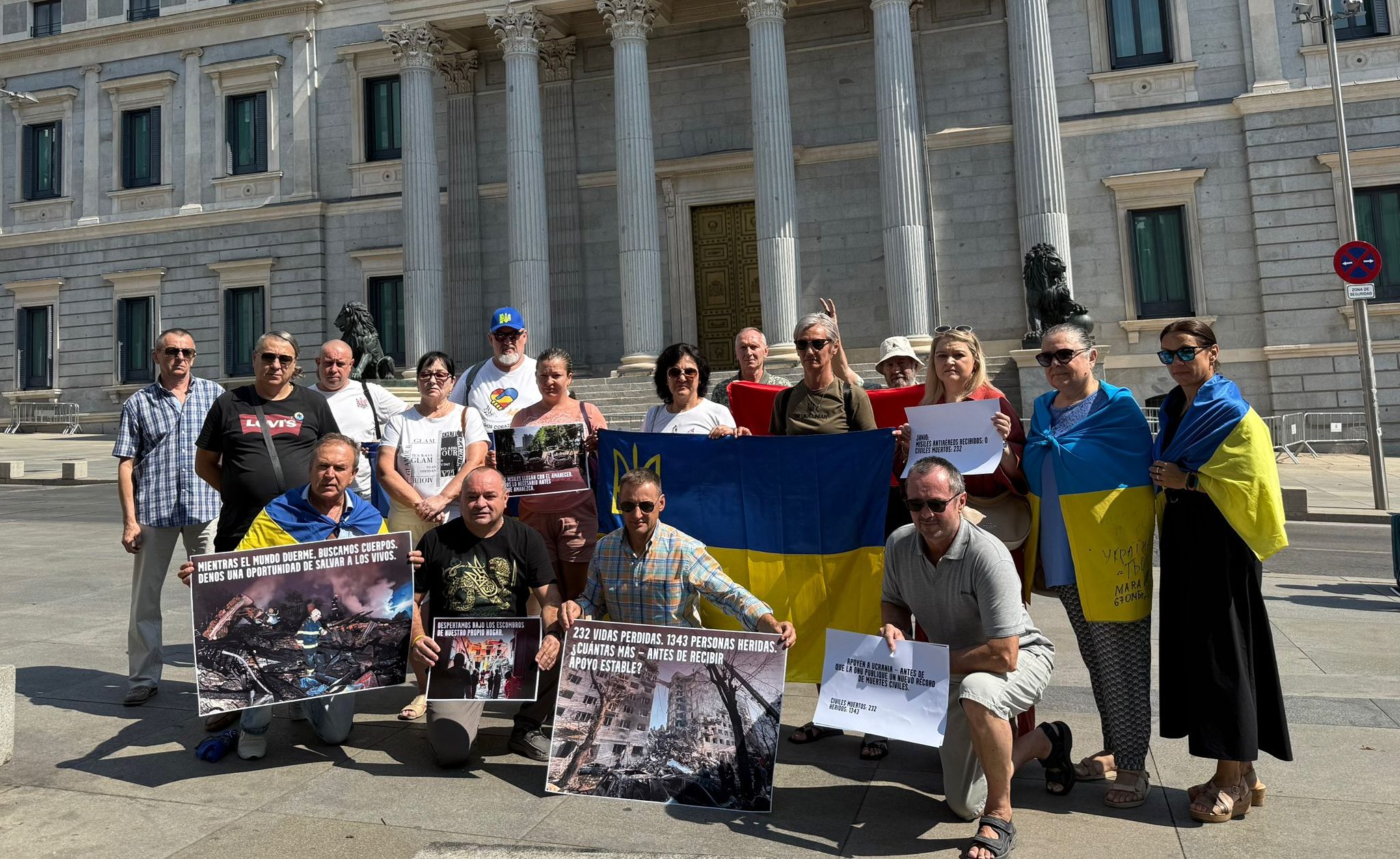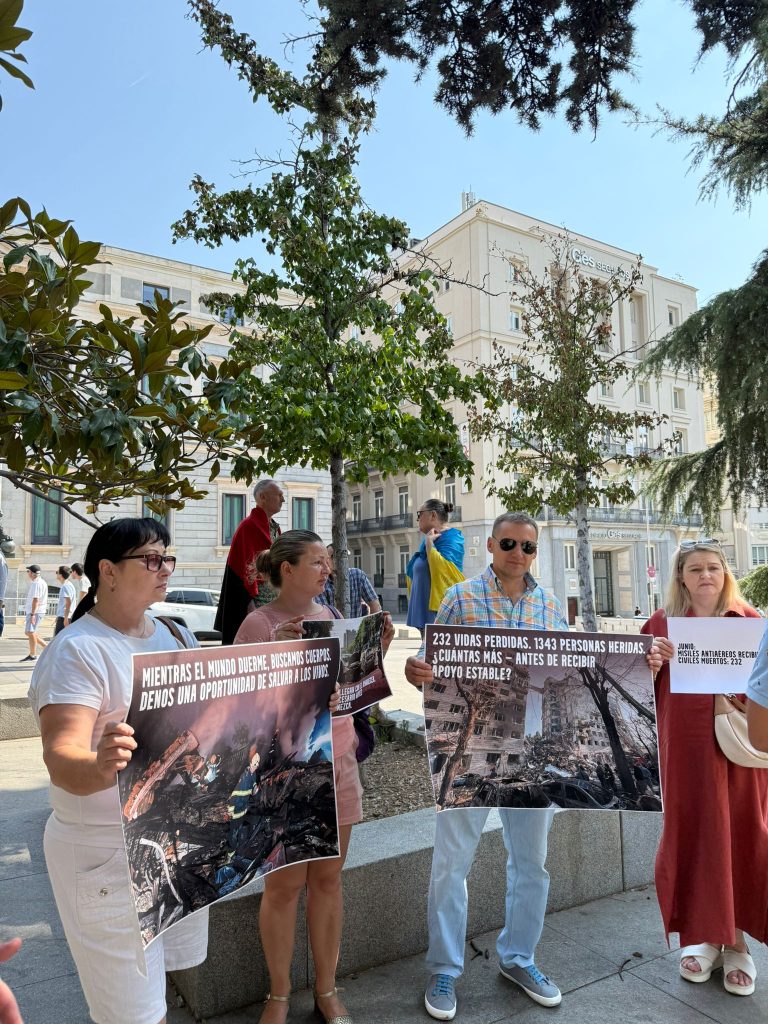 “3 серпня перед Конгресом депутатів у Мадриді відбулась демонстрація, організована Асоціацією ConUkrania та Спілкою Асоціацій КРАІ. Під гаслом “Поки світ спить, ми шукаємо тіла” ми збираємося, щоб згадати, що війна в Україні не закінчилася, що мирні жителі продовжують гинути, зникають люди, і що міжнародне мовчання не може бути відповіддю“, – йдеться в повідомленні.