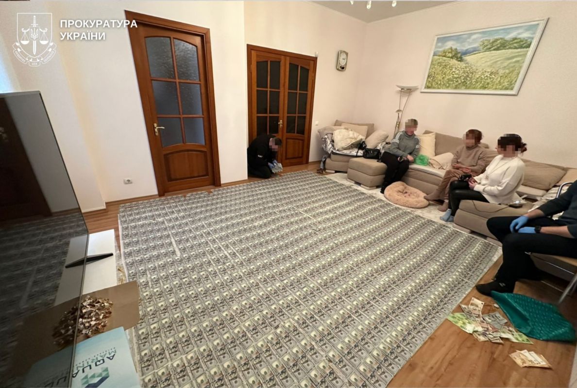 “Під час обшуків, проведених за місцем роботи та проживання спільниць, вилучено понад 956 тис. грн, 221 тис. доларів США, 5740 євро готівкою, а також 87 одиниць ювелірних виробів та чорнові записи з прізвищами людей та сумами ймовірно отриманих від них грошей”, – повідомляє ОГП.