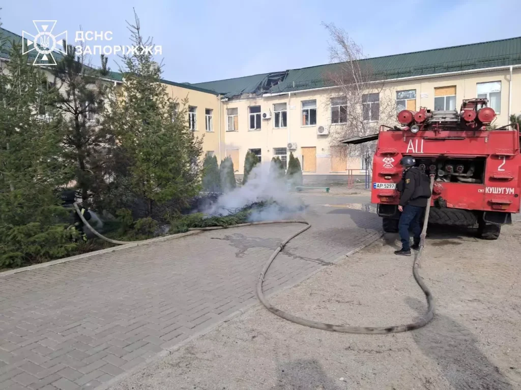В одному із сіл рятувальники ліквідували наслідки влучань по закладу освіти. Крім того, вогнеборці загасили суху траву на відкритій території на площі 15 кв.м.