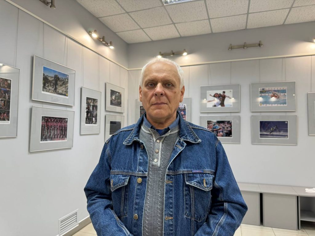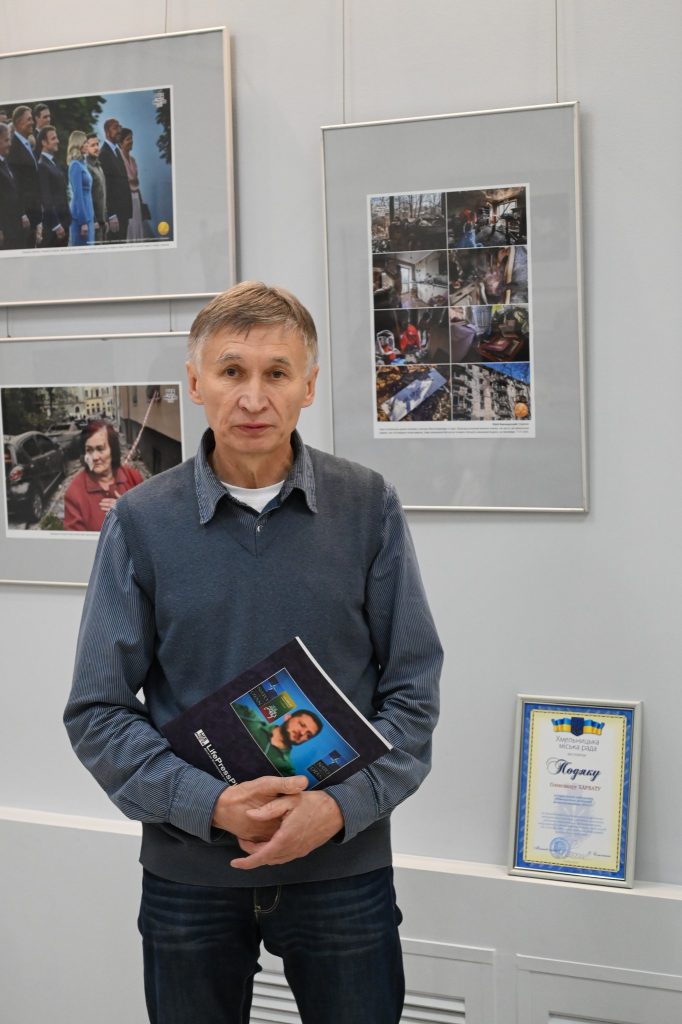 Серед відвідувачів виставки також присутній, фотограф, керівник студії “Світлинка” Хмельницького палацу творчості для дітей та юнацтва Сергій Успаленко.
