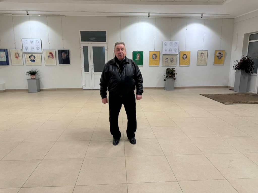 Виставка складається із 36 творів, 28 портретів, серед яких: Тарас Шевченко Джордж Вашингтон, Іван Миколайчук та світові актори, а також один “Автопортрет”, виконаний самим захисником.