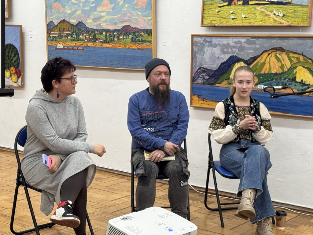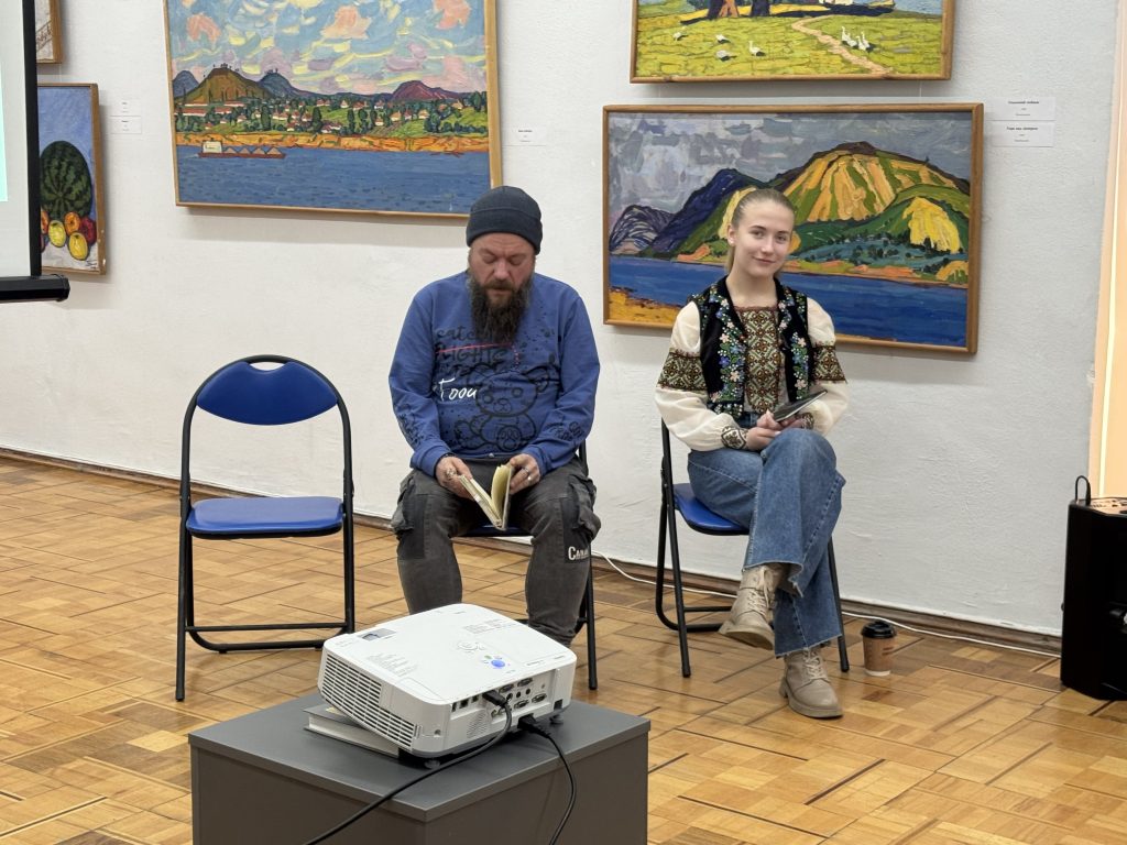 Поет та художник Андрій Каптар поділився із присутніми тим, як змінилася тематика його творчості. Він зазначив, що зазвичай пише на гумористичну та саркастичну теми, проте війна внесла свої корективи.