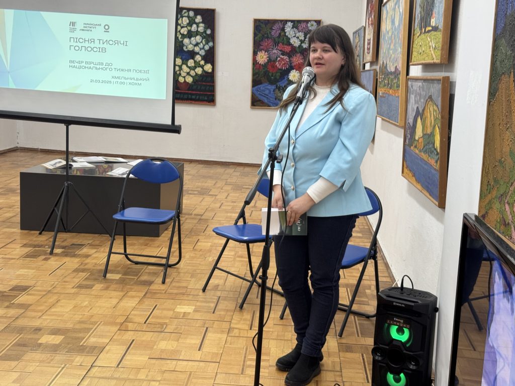 До національного тижня поезії від Національного інституту книги у Хмельницькому обласному художньому музеї відбувся поетичний вечір під назвою “Пісня тисячі голосів”. У події взяли участь поети та поетки Хмельниччини.