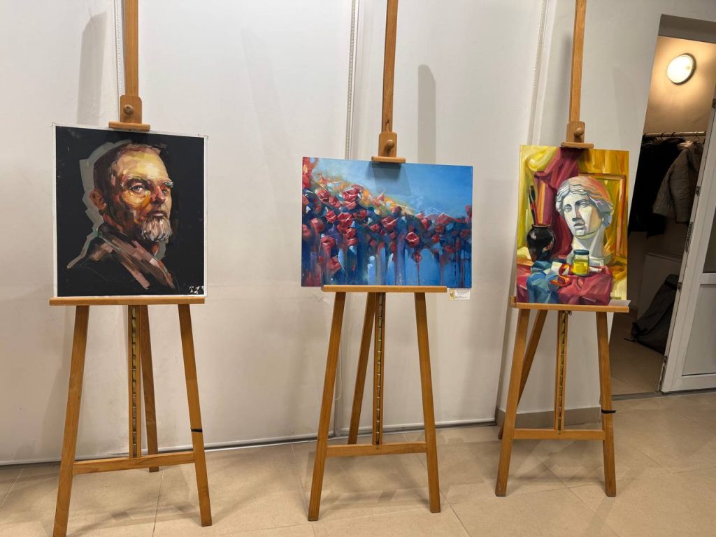 “Дана виставка була запропонована та ініційована Марією Владиславівною 2 місяці назад, щодо демонстрації саме у місті Хмельницькому була така двостороння ініціатива та бажання представити завдання чи роботи, які виконуються студентами під час навчання, тобто це не дипломні роботи, це не випускні, а це семестрові роботи, які студенти на різних спеціалізаціях виконуються“, – розповів директор коледжу Роман Гаврилюк.