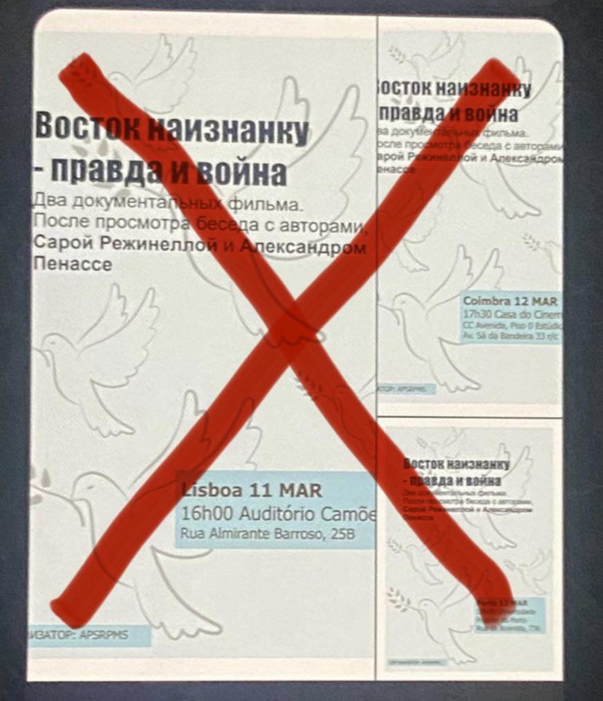 Спільними зусиллями посольства України в Португалії і Спілки українців у Португалії вдалося скасувати показ проросійського документального фільму «На схід від реальності – правда і війна».
